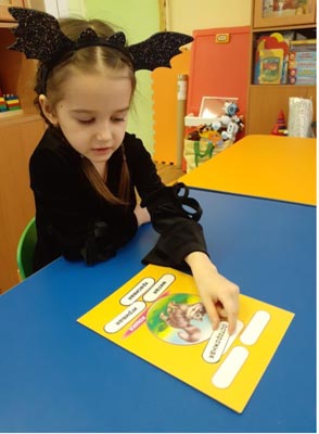 г) Игра-лото "Подбери картинку к слову". У каждого ребенка на столе лежит карточка формата А4, разделенная на 6 окошек. В каждом окошке напечатано слово. Уровень слов в одной карточке разный: односложные, двусложные, трехсложные. Взрослый показывает картинку, а один из детей находит и прочитывает соответствующее слово на своей карточке. Если ребенок смог прочитать слово и понял, что картинка ему подходит, кладет ее на слово. Ребенок, который закроет все окошки со словами, побеждает в игре. Эта игра мотивирует к освоению детьми навыка чтения.